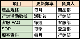 建立知識庫後,需定期更新以確保資料新鮮與準確。建議更新頻率如下: