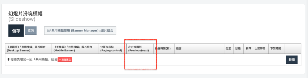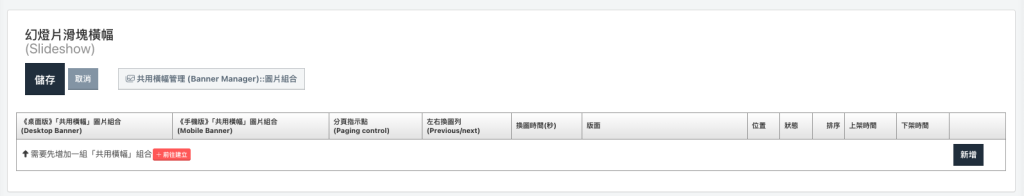 STEP1. 版面>共同橫幅管理。(新增輪播的圖片組合)
