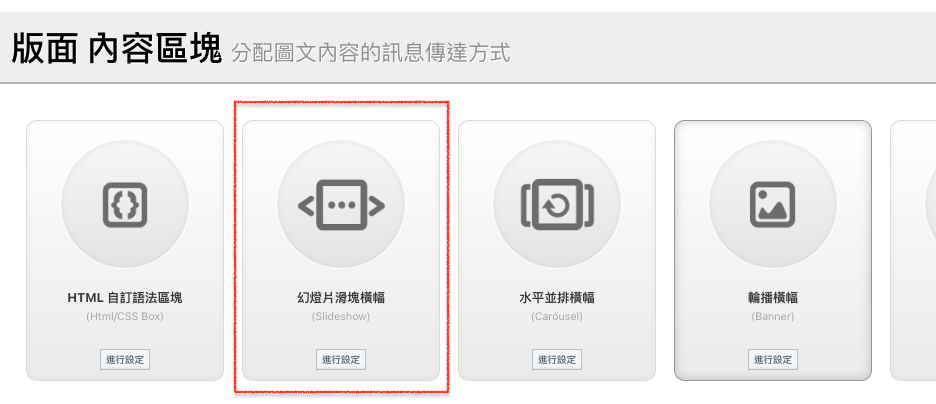 STEP2. 擴充>幻燈片滑塊橫幅。(選擇輪播的圖片組合)